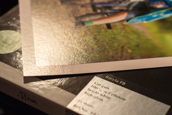 0.33mm Dicke, 325g/m2 ….. Fotoähnliches Glanzpapier mit mässiger Struktur (diese wirkt etwas „maschinell“)