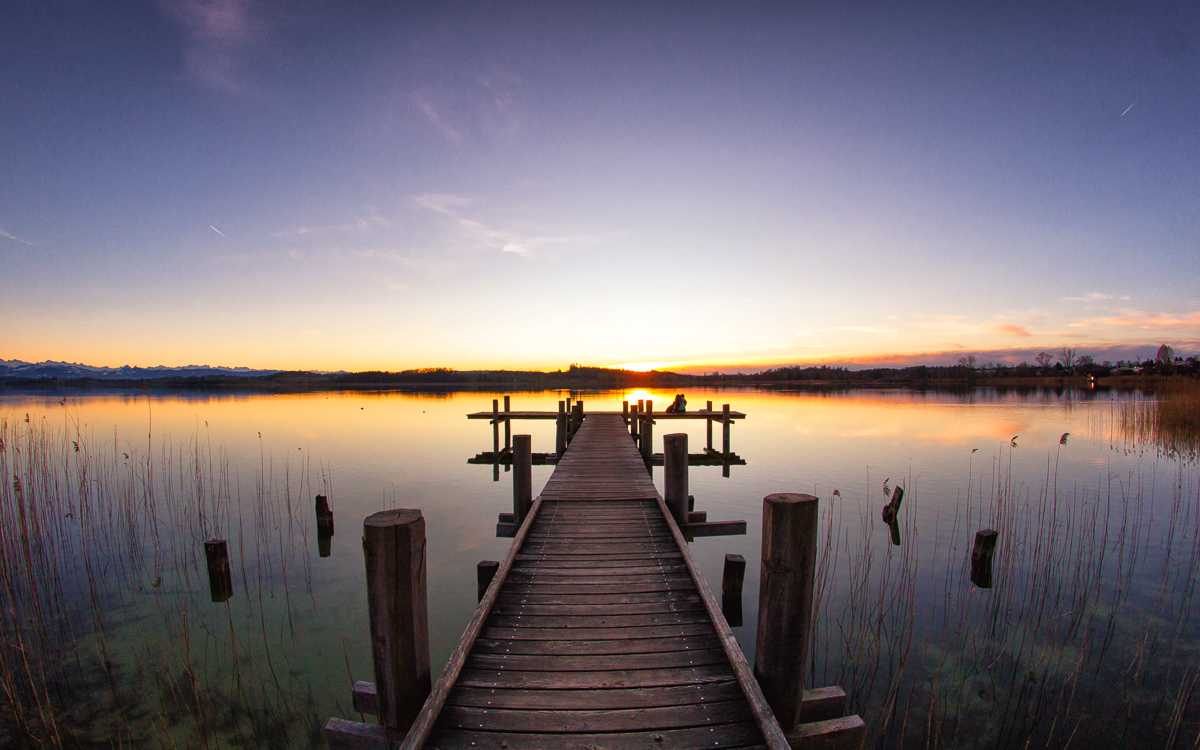 Sonnenuntergang aufgenommen am 15. Februar 2020. Wundervolle Abendstimmung bei Pfäffikon ZH, an einem der Stege Richtung Westen. Vereinzelt kamen Spaziergänger um diesen schönen Moment ebenfalls zu geniessen.