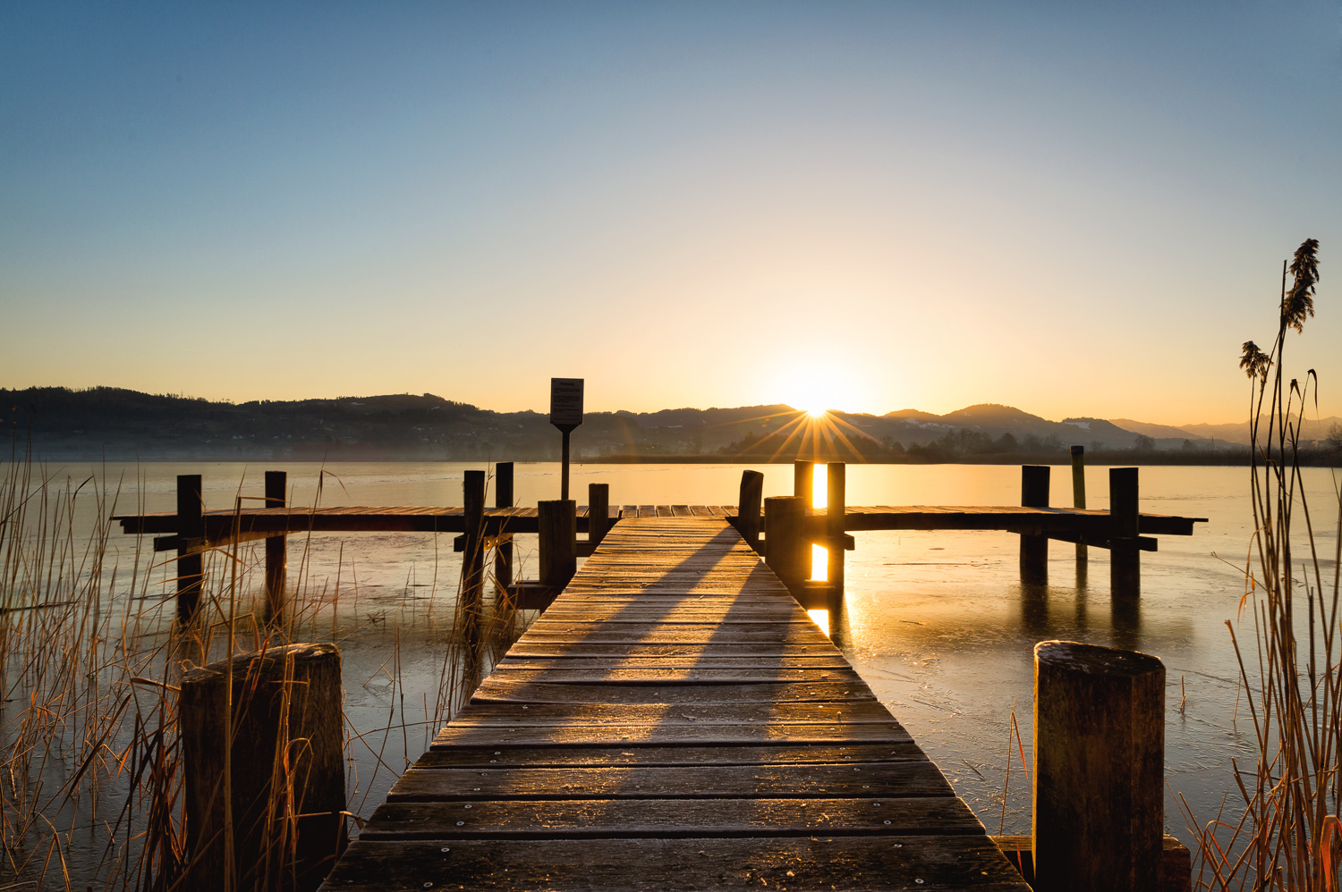 Früh aufstehen lohnt sich - Ein herrlicher Sonnenaufgang beim Steg am Pfäffikersee.